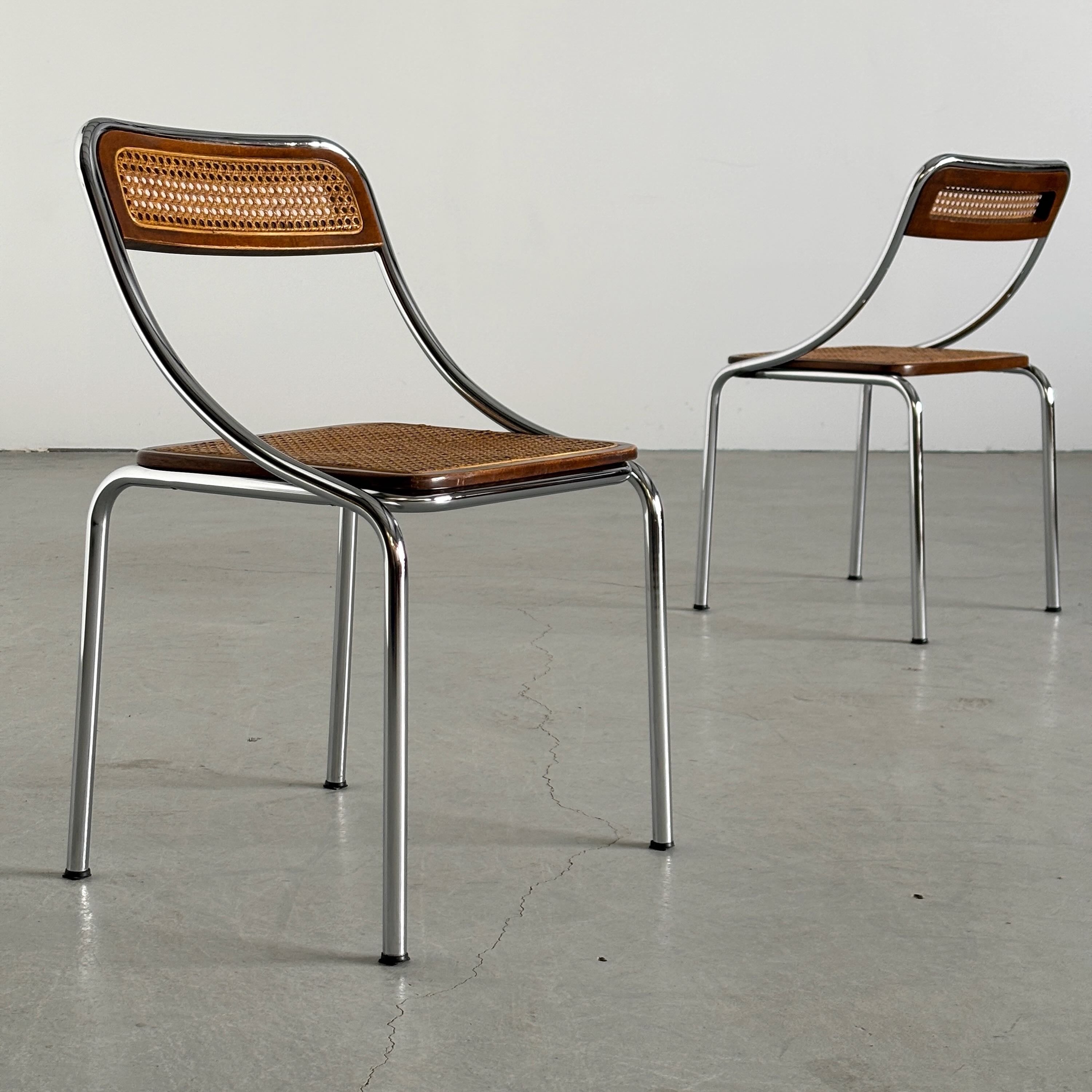 Dining Chairs in Wood, Wickered Cane and ChromeSold out