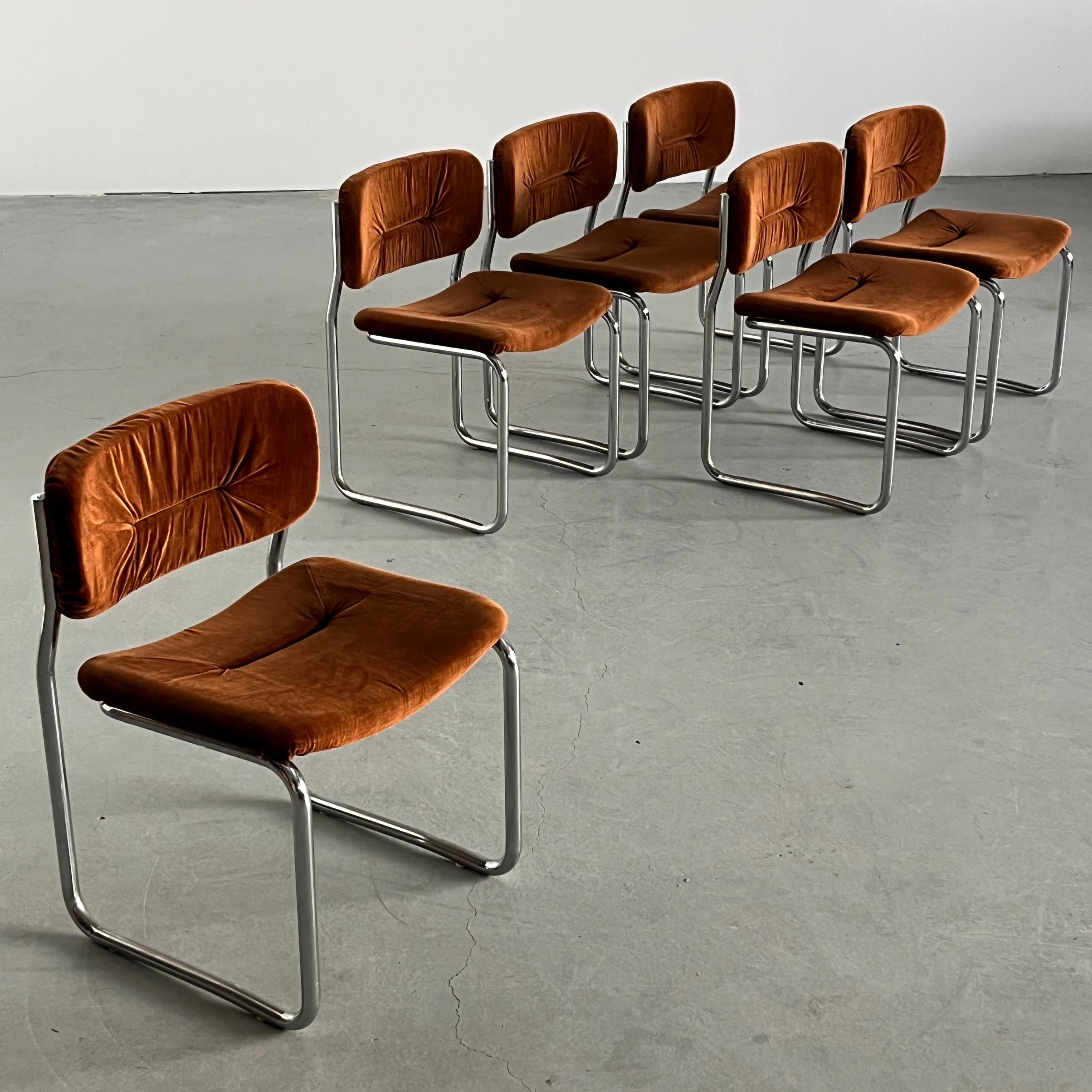 Italian Cantilever Dining Chairs in Dark Orange FabricSold out